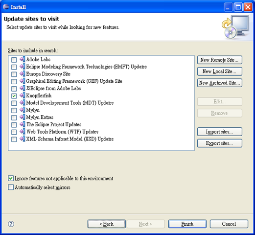 填入名稱以及更新的網址,http://www.knopflerfish.org/eclipse-update/