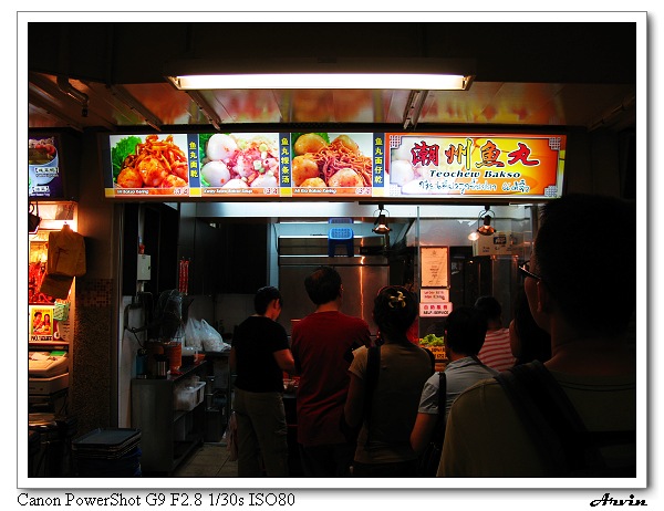因為真的是走累了,本來預計今天要到麥士威路吃”天天海南雞飯",只好停下腳步在潮州魚丸(圖 7)先吃"魚丸面乾"(圖 8),麵條很有彈性和嚼勁,但他們的魚丸有些鬆軟,我個人還是比較喜歡吃有彈性的魚丸,這樣一碗麵要價4塊錢新幣,所以感覺上新加坡的物價與台北市差不多,其實我們還點了大杯甘蔗汁,不過真的累了,我只顧著吃麵,飲料也忘記拍了,不過甘蔗汁在新加坡當地還真的是常見搭配餐飲的飲料。