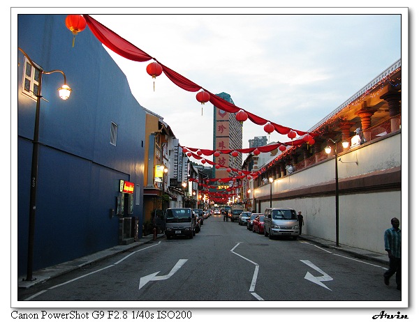不過自由行最痛苦的莫過於迷路,從地圖上我們雖然知道其實飯店離最近的地鐵站並不遠,但不幸的是,沿途問人的結果我們反而迷路了,所以我們就這樣走走停停,走著走著竟然就到我們要的目的地"牛車水",所以我們的第一天的交通費是0元,因為我們兩個人都是"步輪"沿著(圖 6)這樣的路走,可想而知第一天下來我們兩個人都"鐵腿"了。 –_______-