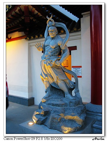 步行 途中印度廟、佛寺、教堂逐一出現在街上,新加坡種族與文化的包容性有時真的讓人吃驚。這張照片(圖 13)是經過佛寺前拍下的雕像,後來終於抵達麥士威路,但很不幸的等我們找到"天天海南雞飯"的時候,老闆已經開始清洗廚具準備收攤,所以我們也只好到處晃晃找尋其他食物,隔天再來吃海南雞飯。