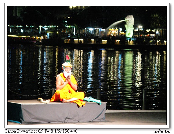 沿著新加坡街道,穿過新加坡河,我們就搭著"快活林"的車,沿途欣賞新加坡的美景,不過在昏暗的夜色下,行進的車上我也無法拍下什麼東西,所以索性不拍照用眼睛感受一下新加坡的夜景,後來我們下車沿著新加坡河經過萊佛士雕像走了一趟,只是剛認識的朋友,我也不好意思要對方停下來等我拍照,所以只有在濱海藝術中心時,拍下當時表演的一些照片(圖 16-19:其實照片照的有點糟糕)。 –__________-
