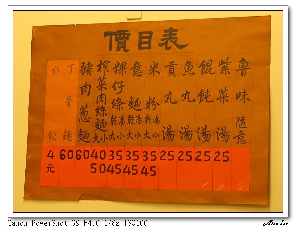 價目表上的食物我只有吃過"豬肉蔥麵"與"丁骨麵",如果你喜歡麻辣的味道那就點豬肉蔥麵,如果你不太敢吃辣那就建議你吃丁骨麵。