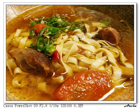 豬肉蔥麵的麵是寬麵條,加上大塊紅、白蘿蔔與其它秘方熬煮過的湯頭,灑上翠綠的蔥花,光用眼睛看就讓人覺得很可口,寬麵條咬起來軟Q有彈性,豬肉蔥麵的豬肉是經過挑選,完全不帶骨頭,咬起來的口感軟嫩滑順,如果你喜歡吃辣的話,我想這碗麵濃郁的湯頭應該會讓你很開心,只不過我不善於吃辣,所以整碗麵吃下來我汗如雨下,不過我依舊覺得這碗麵很值得。
