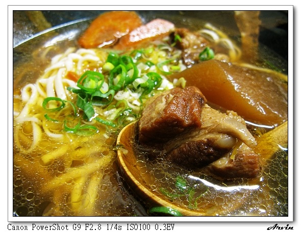 丁骨麵的麵是較細的麵條,加上大塊紅、白蘿蔔熬煮過的湯頭,湯頭味道相較於豬肉蔥麵較不嗆辣略帶甜味,麵條口感咬起來也一樣軟Q有彈性,不過我個人還是比較喜歡豬肉蔥面寬麵條的口感,丁骨麵的豬肉是選擇帶骨豬肉,咬起來的口感,感覺上是用利用油溫燙過封住肉汁,再丟到湯裡面熬煮,所以豬肉口感較為乾硬,不過整體而言仍是值得各位去嘗試看看。